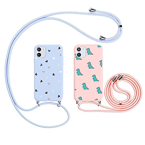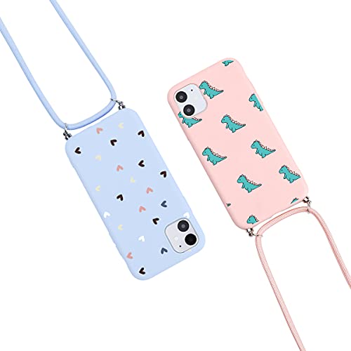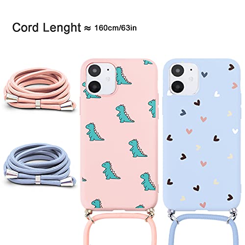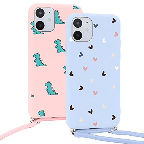 ZhuoFan [2 Pezzi Custodia con Cordino per iPhone 12 Mini - 5.4", Cover con Collana Practical Stylish, Colorato Morbido Silicone TPU Bumper Antiscivolo Case per Cellulare Girocollo