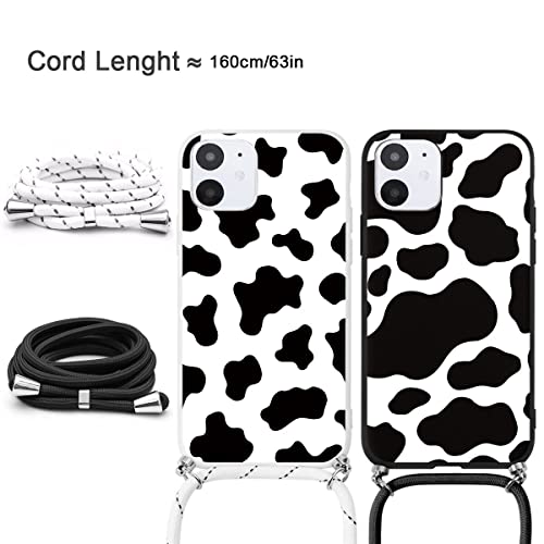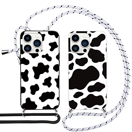 ZhuoFan [2 Pezzi Custodia con Cordino per Samsung Galaxy A23 5G con Disegni, Aesthetic Mucca Modello Cover con Laccio Tracolla Cellulare, Morbido Silicone TPU Bumper Antiurto Case con collana