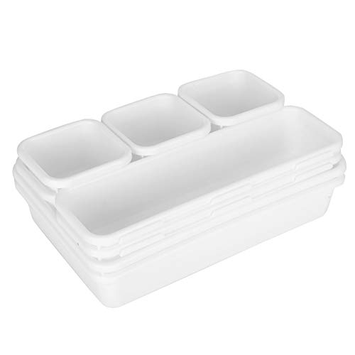 Zhuolong 8 pz Cassetto Organizer Box Vassoi Portaoggetti Cassetto Divisori per Home Office Cucina Bagno(Bianca)