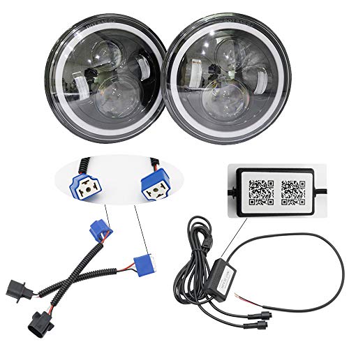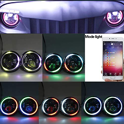 ZHUOYUE 1Pcs 7 pollici Led Fari Lampadina RGB Halo Angel Eye con DRL Bluetooth Remote Music Mode per Jeep Wrangler Lada 4x4 Niva Hummer H1 H2(Blocchi Fari anteriori auto)