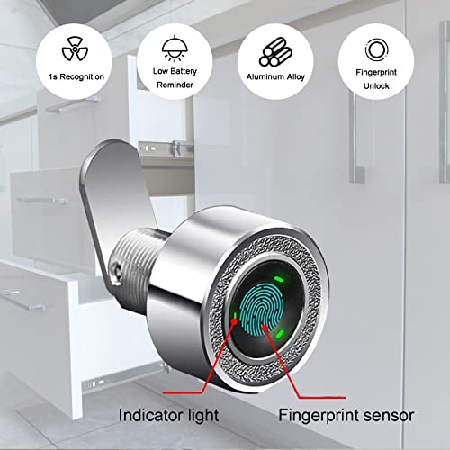 ZHUTA Lucchetto per cassetti, senza chiave, per 20 impronte digitali, ricaricabile, USB intelligente, 20 mm, per casa e ufficio, argento