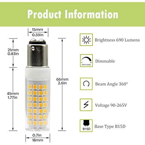 ZIBEI B15D LED Lampadina 6W Equivalente a Lampadina Alogena da 75W, 690LM,Angolo 360°,Bianco Caldo 3000K,Dimmerabile (2 pezzi) [classe energetica A ++]