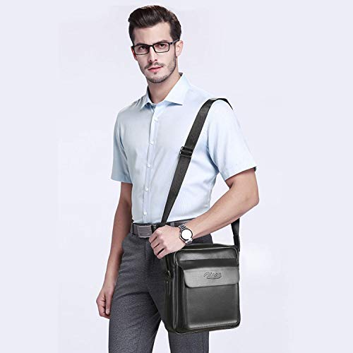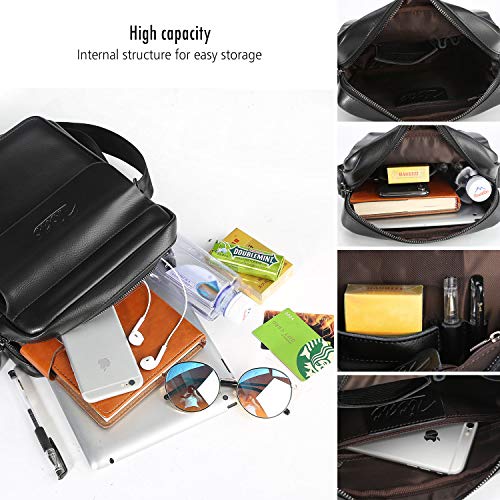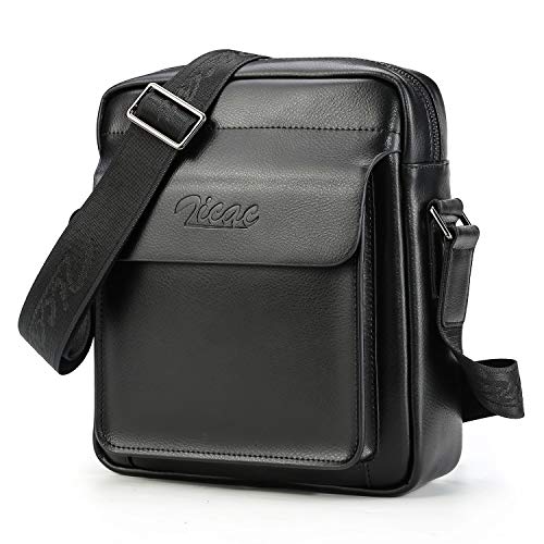 Zicac Borsello Uomo, Grande Borse a Tracolla In Vera Pelle Borsa a Spalla a Tracolla Uomo per Contenere Libri / IPad Ufficio nere Libri / IPad Ufficio