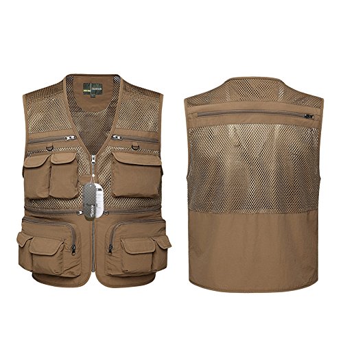 Zicac Giubbino da Pesca, Multi Tasca Gilet da Pesca Maglia Traspirante Pescatore per Campeggio Caccia Pesca, EU M (XL ASIA)