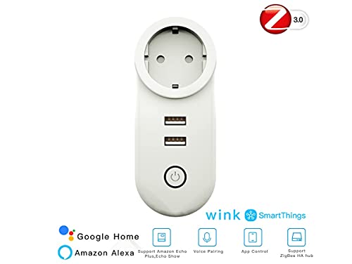 ZigBee 3.0 Smart Socket, Presa Schuko Intelligente ZigBee, Con 2 Porte USB 16A 220V, Compatibile Con Alexa Google Philips Hue Samsung Smartthings