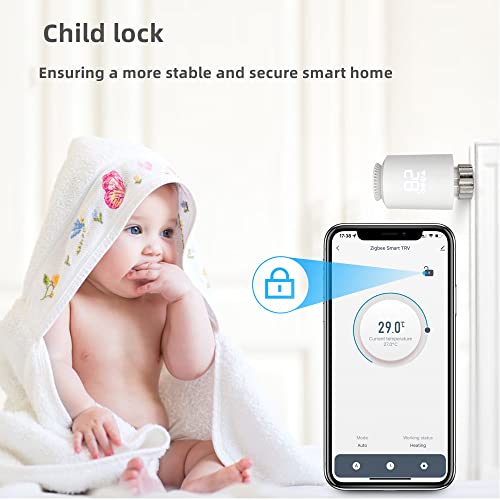 Telecomando APP: la valvola del radiatore intelligente funziona con l'app Tuya Smart Life per il controllo remoto. Collegare la valvola del termostato al gateway Zigbee, quindi aggiungerla all'app Smart Life. È possibile controllare la valvola del termostato in qualsiasi momento ovunque attraverso il telefono cellulare. (NOTA: ZigBee Gateway è un must.)