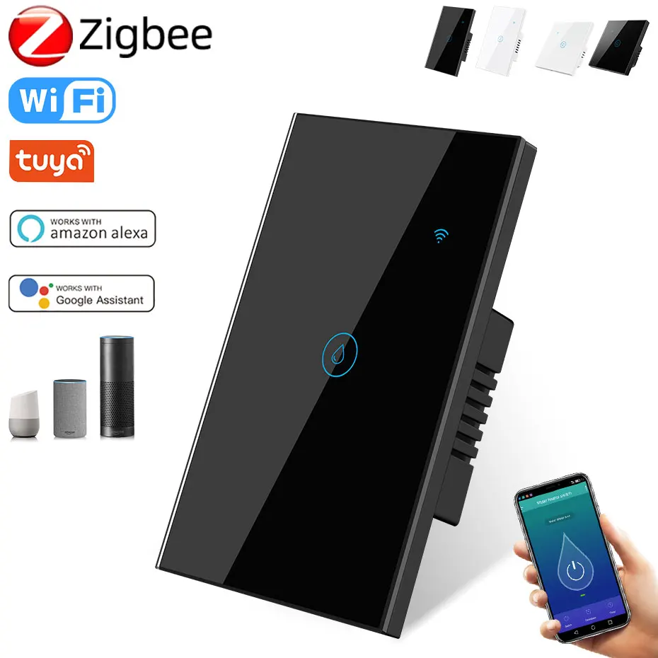 Zigbee Tuay Wifi Touch Panel Voice Remote Control 4400W EU/US Standard Smart Water Heater Switch Smart Life App Control