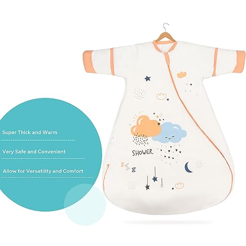 ZIGJOY Bambini Cerniera a Due Vie Sacco Nanna 2.5 tog Coperta per Bambini Invernale Orlo Allargato Sacco a Pelo per Bambino 6-18 Mesi Maniche Rimovibili(Nube)