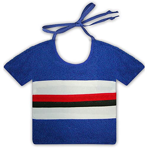 Bavaglino fatto a mano a forma di maglia da calcio blu cerchiato ;