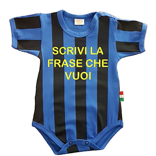 Zigozago Body Made in Italy a Manica Corta a Righe Nero Azzurro Stampate Fatto a Mano in Cotone - Taglia 3-6 Mesi 62-68 cm, Colore Azzurro