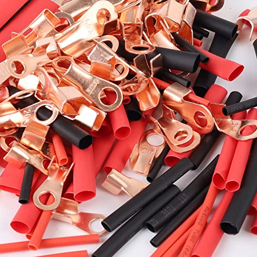 ZIJANG 70 pezzi Set di Capicorda, 5 Modelli di Capicorda in Ottone Aperti, Capicorda ad Occhiello ad Anello, Con 127 pezzi Guaine Isolanti Rosse e Nere Adatte per Capicorda Elettrici Assortiti