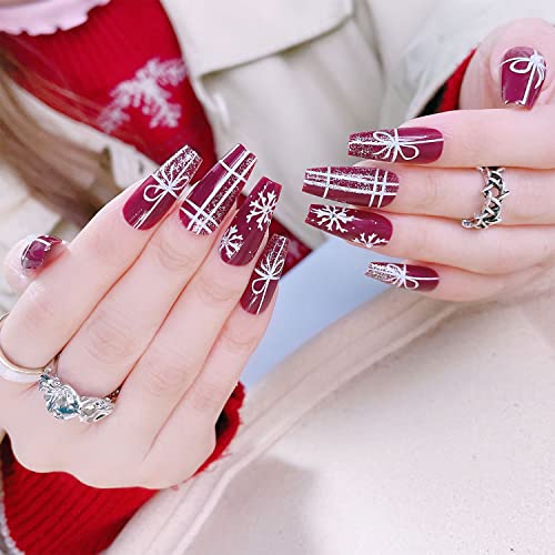 Decorazione squisita: con il Natale come tema, ogni unghie finte ha diversi motivi di fiocchi di neve e altre decorazioni, che mostreranno il tuo fascino e il tuo temperamento dopo averlo indossato.