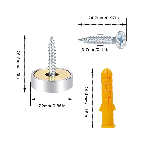 ✺ 【Aspetto Moderno】: Il Chiodi a Specchio copre perfettamente le viti esposte e la superficie cromata multistrato resiste alla corrosione quotidiana, ai graffi e allo sbiadimento. Rendi lo specchio elegante. È adatto per mobili in legno o vetro come specchi, pannelli del bagno, armadi e insegne in vetro.