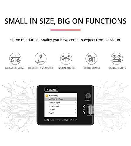 Small in Size, Big On offre tutte le funzionalità che ci si aspetta da toolkitrc: Balance Charge / Misuratore di elettricità / sorgente di segnale / Drone Charge / Test di segnale