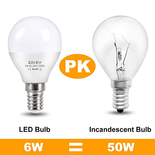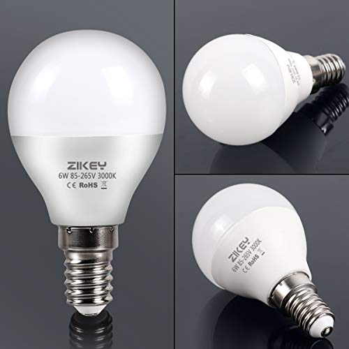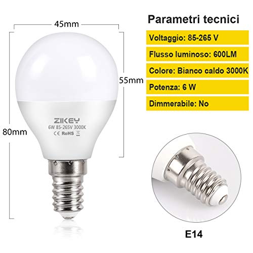 ZIKEY Lampadina LED E14 a Sfera, 6W Equivalenti a 50W, G45 Mini Globo Luce Bianca Calda 3000K, 600LM, non dimmerabile - Pacco da 6