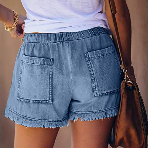 Zilosconcy 2022 Pantaloni corti jeans donna estate corto con tasche alta vita Shorts regolabili Correre Elegante Ciclismo Pantaloni Respirabili in Spiaggia e Cordone, blu, S