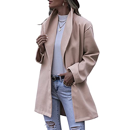 Zilosconcy Cappotto da donna in finta lana sottile Cappotto da trench Cappotto caldo solido lungo elegante soprabito alla moda Maglie Autunnali