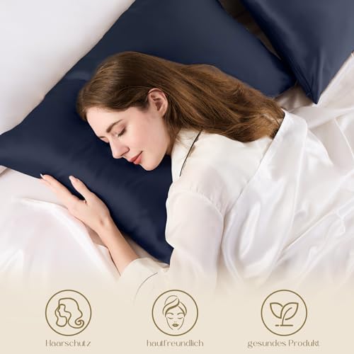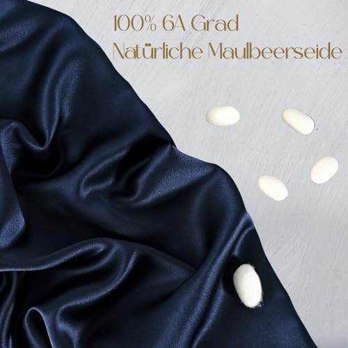 ZIMASILK, Federa in 100% seta di gelso, delicata sui capelli e sulla pelle, entrambi i lati in seta da 19 Momme, 1 pezzo (40 x 80 cm, blu navy)