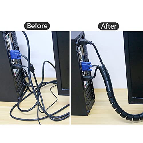 Zimjoy 1 Pezzi Guaina per Cavi Flessibile 3m*22mm Copri Cavi Elettrici Guaina Spiralata Guaina Raccoglicavo con Fermaglio Guidafilo per TV,Computer,Audio(Nero)