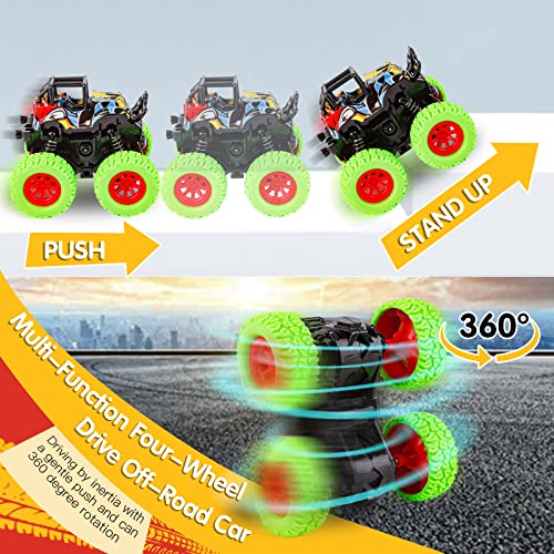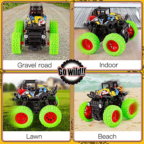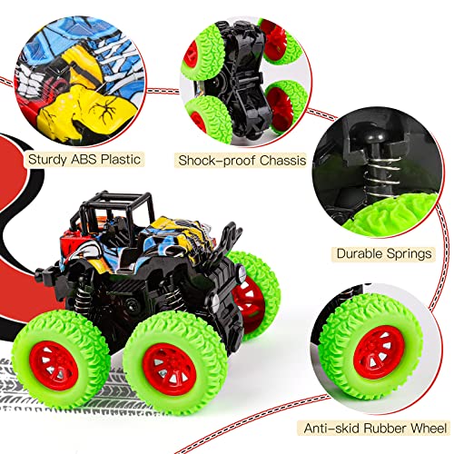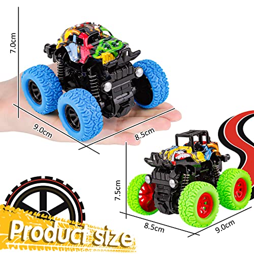 M zimoon Monster Auto a Inerzia per Bambini, 2 pacchi Auto da Corsa a Quattro Ruote Giocattolo Fuoristrada con Rotazione a 360 Gradi Regalo per Ragazzi (Blu + Verde)