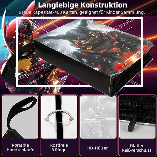 【400 Carte di Grande Capacità】Uniico design a doppia faccia con grande capacità, album per Pokem con 50 pagine premium con 4 tasche incluse. Album per Pokem Ogni pagina può contenere 8 carte per un totale di 400 carte. Album di carte trasparente ad alta risoluzione e facile da distinguere.