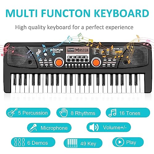 M zimoon Tastiera Pianoforte, 49 Tasti Tastiera Elettronica con Microfono Tastiera Musicale Compleanno Regali per Il Giorno di Natale età per 3-12 Anni Ragazze Ragazzi