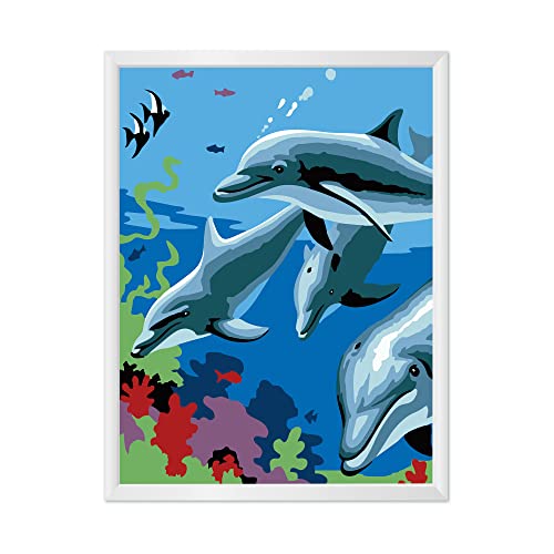 Zimrobin Dipingere con i Numeri Bambini, 7 8 9 anni Gioco Creativo Per Bambine e Bambini con Cornice 3 Pennelli e Colori Acrilici, 18 X 24 cm(Famiglia di delfini)