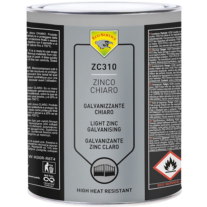 ZINCO SPRAY ECOSERVICE ML. 400 Zincospray è un protettivo antiruggine con elevato potere coprente di colore zinco chiaro. Prodotto monocomponente pronto all'uso ad alto contenuto di zinco puro in veicolo sintentico al 98%. Indicato per ripristinare zincature su saldature e proteggere dalla ruggine tutti i materiali ferrosi. Forma un film elastico resistente a tutti gli agenti atmosferici che può essere lasciato come protezione finale o essere sovraverniciato con qualsiasi tipo di vernice. Essicca rapidamente e non cola. Bomboletta da ml. 400