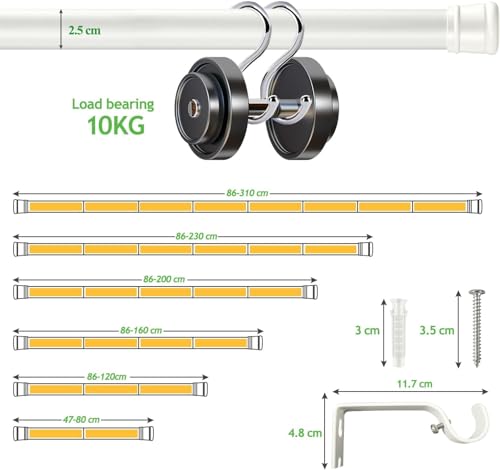 【Ampia gamma di usi】: Questa bastoni per tende è adatta sia per superfici lisce che ruvide, come vetro, piastrelle, pareti in legno, marmo, ecc., altamente funzionale e riutilizzabile, Bastone per tende ideale per tende leggere, di peso medio o max