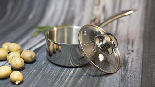Zinel - Casseruola a tre strati in acciaio INOX con coperchio in vetro, 2 l, 18 cm