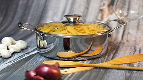 Zinel 5040 Padella a Tre Strati in Acciaio Inox con Coperchio in Vetro, 3L-24 cm, Inossidabile, Argento
