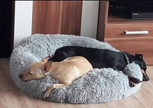 ZINN - Cuccia per cani extra large, rotonda, calmante, morbida, lavabile, in pelliccia, per cani di grandi dimensioni, colore grigio chiaro, XL-100 cm