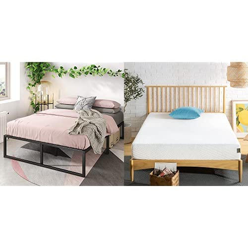 Zinus Lorelai 36 cm Telaio del letto a piattaforma in metallo + Green Tea Essential Materasso in memory foam