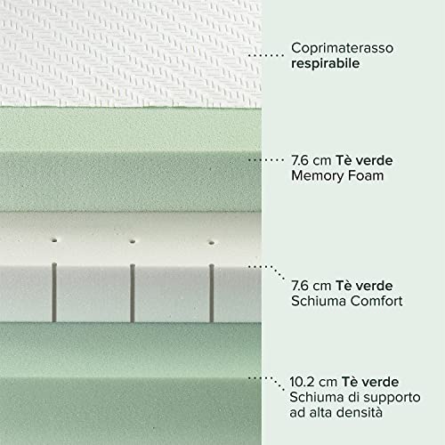 PIÙ PIACEVOLE - Con una quantità maggiore di memory foam, una morbida fodera in maglia traspirante e tè verde naturale ora in ogni strato, siamo riusciti a migliorare il nostro materasso più popolare per regalarti un sonno ancora più confortevole e ristoratore