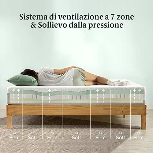 ZINUS Materasso Luxe in memory foam al tè verde | Materasso adattabile a 7 zone | 140 x 190 cm | Altezza 25 cm | Materasso arrotolabile | OEKO-TEX