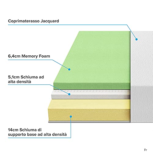 SCHIUME ANTI-PRESSIONE - 6,35 cm di memory foam che si adatta alla forma del corpo, 5 cm di morbida schiuma comfort che stimolano il flusso d'aria e 14 cm di schiuma base di supporto, durevole e ad alta densità;