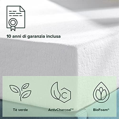 ZINUS Materasso in memory foam al tè verde | Materasso adattabile a 7 zone | 140 x 190 cm | Altezza 25 cm | Materasso in una confezione | Riduzione della pressione | Certificato OEKO-TEX