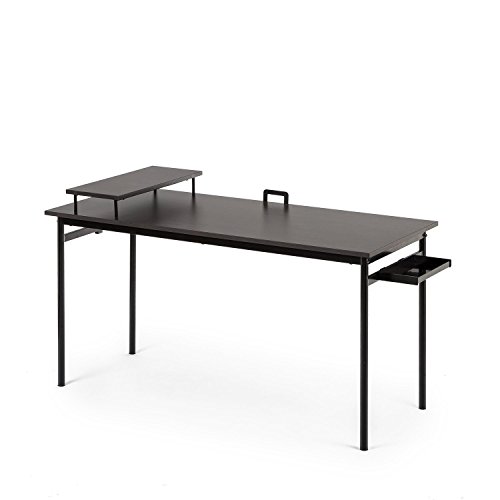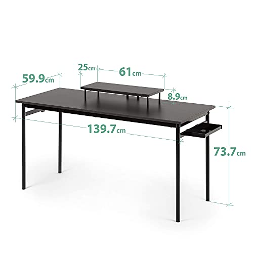 ZINUS Tresa 140 X 60 cm Scrivania in Metallo Nera con Spazio di Stivaggio e Supporto per Monitor, Postazione di Lavoro con Finitura Espresso, Scrivania per Computer, Facile da Assemblare