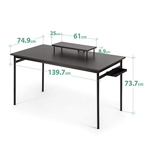 ZINUS Tresa 140 X 75 cm Scrivania in Metallo Nera con Spazio di Stivaggio e Supporto per Monitor, Postazione di Lavoro con Finitura Espresso, Scrivania per Computer, Facile da Assemblare