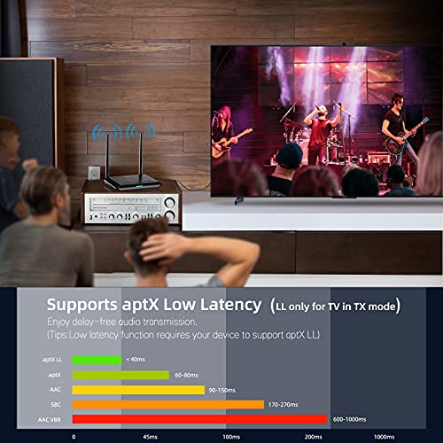ZIOCOM Trasmettitore Ricevitore Bluetooth per TV, Adattatore Bluetooth con AptX a Bassa Latenza, Raggio Lungo a 50m, Indicatore LED, Adattatore Audio Wireless per TV, PC, Altoparlanti e Stereo a Casa