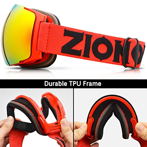 ZIONOR Lagopus X4 Snowmobile Snowboard Skate Occhiali da Sci con Il 100% di Protezione UV400 Magnet Obiettivo Veloce Cambiamento sferica Senza Telaio Occhiali da Sci (Rosso)