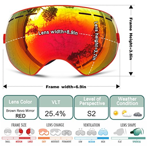 ZIONOR - Occhiali da Sci/Snowboard con Lenti Doppie, Rimovibili, grandangolari, Anti-Appannamento, Unisex, Multicolore, Lagopus3100 (Rosso)