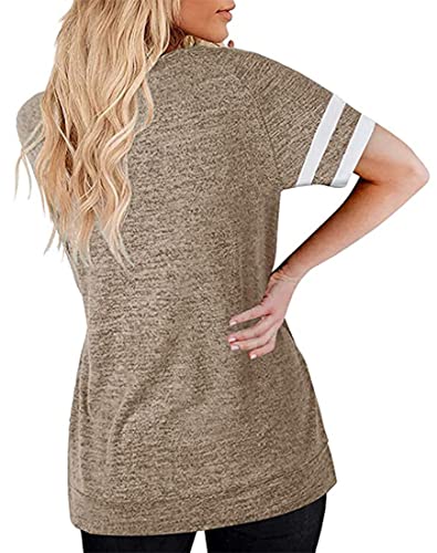 ZIOOER Maglietta Donna Estive Banda T-Shirt con Maniche Corte Elegante Semplici da Casual Tee Cime Tops Cachi L