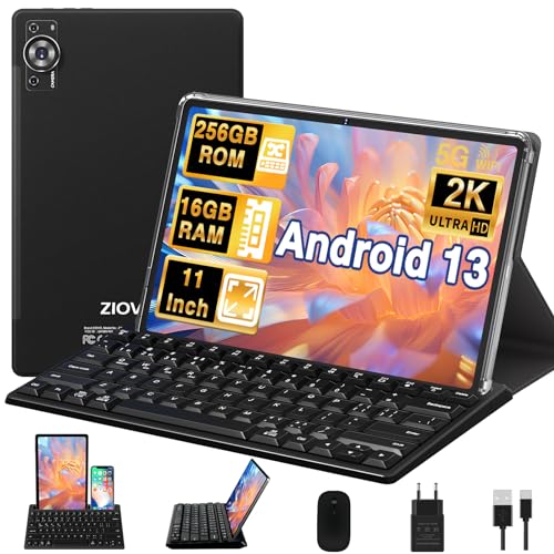 ZIOVO Tablet 11 Pollici Android 13 Tablet PC,16GB RAM+256GB ROM/TF 1TB, Octa Cores 2.0Ghz Tablet, 5G WiFi/8600mAh/ 2000 * 1200 FHD IPS/13+5MP/GMS/BT5.0/GPS, Tablet con Tastiera&Mouse - Nero