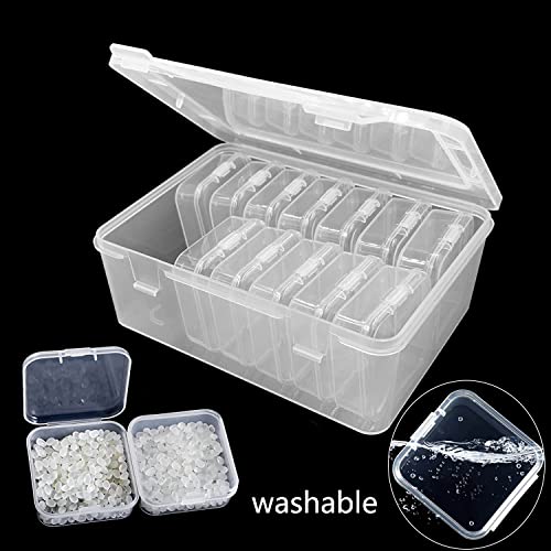 【Quantità】 Riceverai 14 piccole scatole di plastica trasparente (5,5 x 5,5 x 2 cm/2,16 x 2,16 x 0,79 pollici) e 1 scatola rettangolare trasparente per materiali artigianali (16,5 x 11,5 x 6 cm/6,5 x 4,52 x 2,36 pollici), abbastanza per l'uso quotidiano e la sostituzione. Il design del coperchio trasparente consente di identificare facilmente e rapidamente il contenuto di ogni scatola.