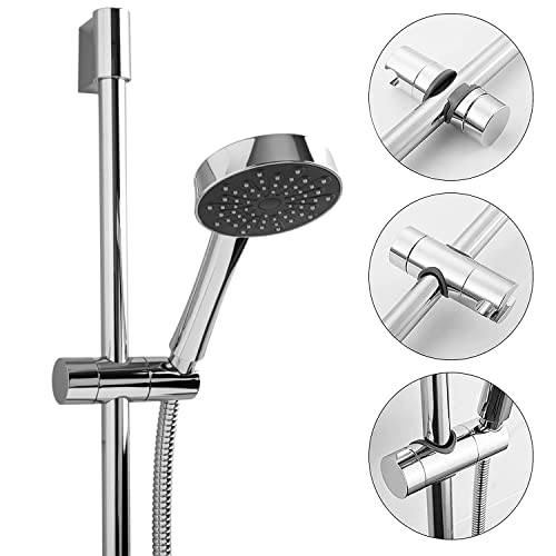 【Qualità durevole e premium】: il supporto per soffione doccia in 2 pezzi è realizzato in materiale ABS tecnico.Robusto e durevole, di bell'aspetto, il supporto per doccia sembra molto semplice, è rifinito con cromatura per una bella finitura lucida per una maggiore durata.