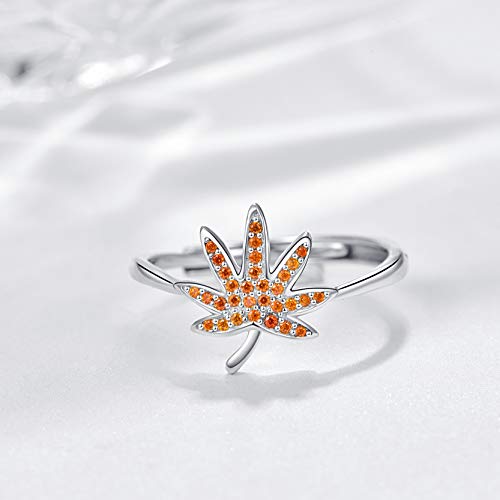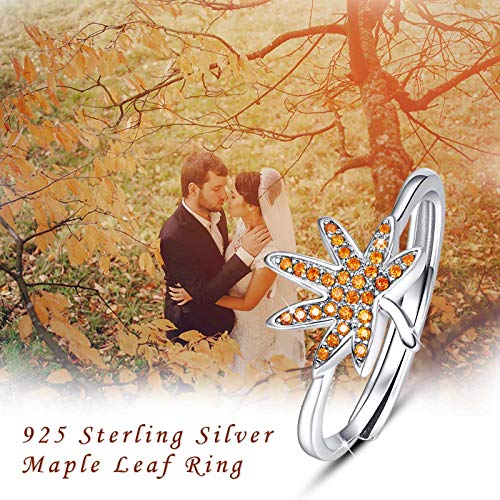 ZIPPICE Argento Anello Foglia D'Acero, Anello In Argento Puro 925, Anello Impilabile, Anello Aperto Foglia D'Acero Con Zirconi Biondi, Gioielli Regalo Per Donne E Ragazze