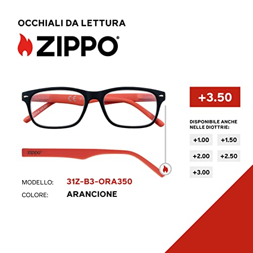 Zippo Occhiali da Lettura, Realizzati con Montatura dalle Linee Morbide, Ideale per Uomo e Donna, Diottria +3.50, Aste Color Arancio