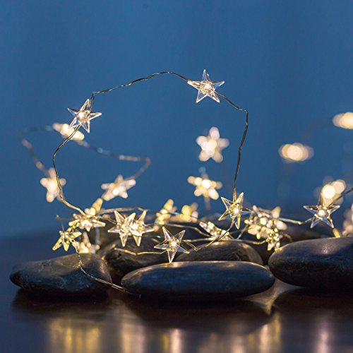 Ziste, catena di luci brillante di colore bianco caldo, luci di Natale e decorative per camera da letto, per il cortile per feste, 40 luci al LED, a forma di stella STAR with WARM WHITE LIGHT