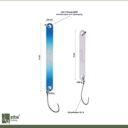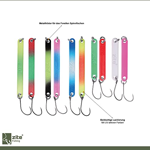 Zite Fishing Set Di Esca Artificiale per Trota - Trout Stick Spoons 4-6 cm 5 Pcs con Scatola - Kit Cucchiaini Esche Artificiali Spinning UV Attivo